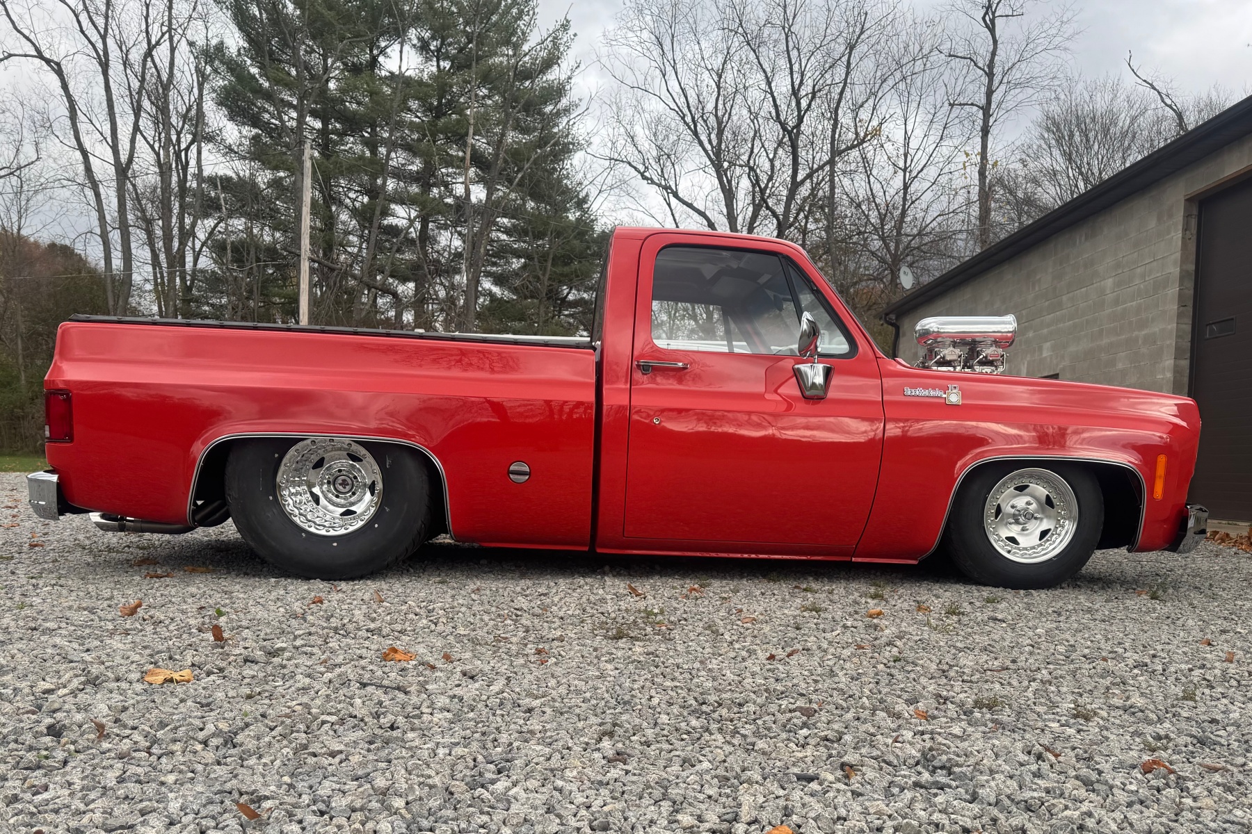 The 1977 Chevrolet C10 was built in collaboration with longtime CRC partners, Jeff and Jeffrey Lutz (Lutz Race Cars), and NHRA Top Fuel star, Clay Millican, and includes components from numerous donating partners and collaborators. Key features include an Edelbrock/Musi 555 carbureted big block engine paired with an 8-71 supercharger, transforming this mint-condition classic truck into a modern Pro-Street powerhouse.