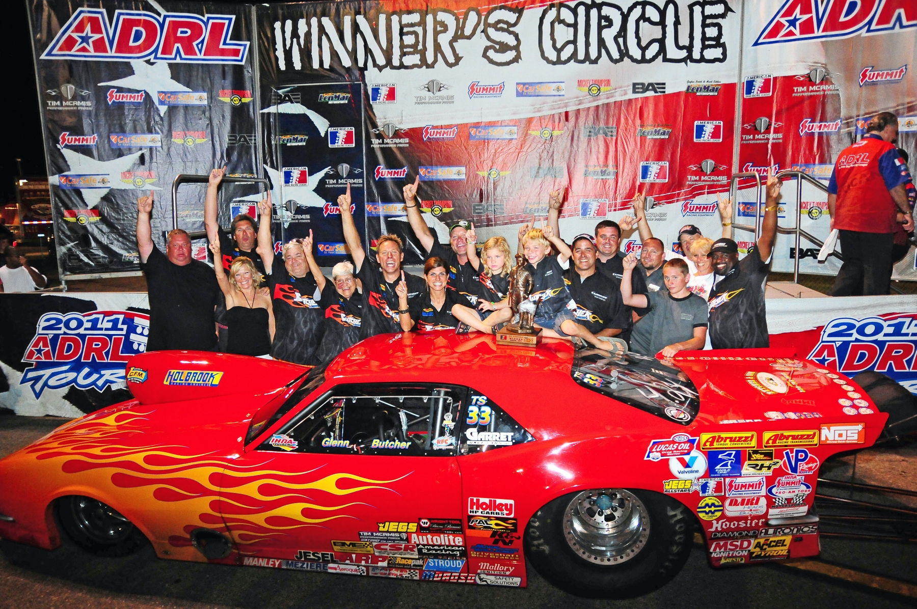 As the decade ended, though, Butcher sensed a change in IHRA culture that had him looking for Top Sportsman alternatives beyond the rival NHRA. Coincidentally, he was among a group of four drivers invited in May 2011 to participate in the first-ever appearance of Top Sportsman at an ADRL event. The four-car display at Pennsylvania’s Maple Grove Raceway was an exhibition only, but two months later at Martin, Michigan, Butcher went into the record books as the first winner of an official ADRL Top Sportsman event.