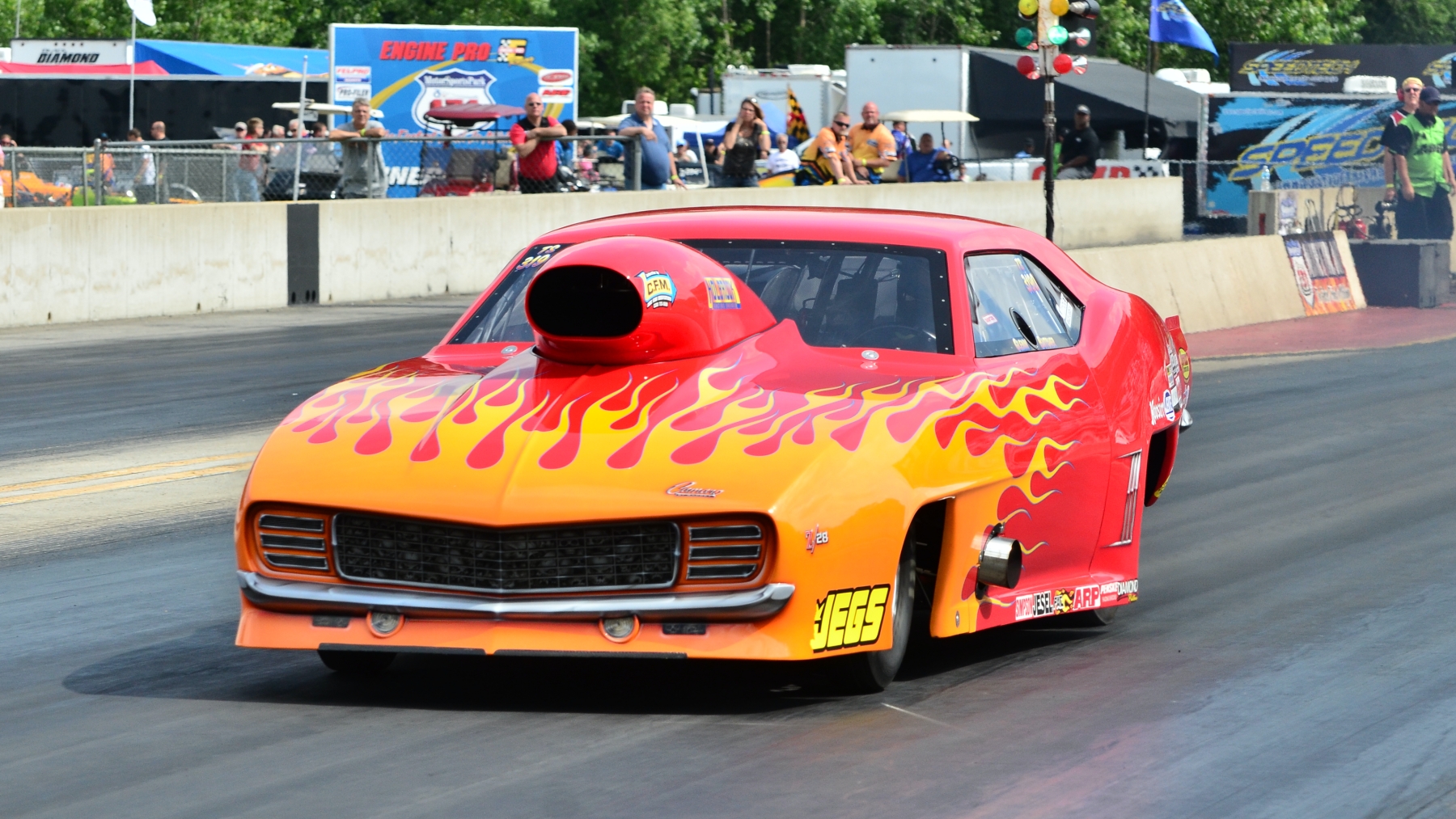“But it just so happens that Carl from Stroud was at the race track for the divisional—which is unheard of—but because IHRA went from 42 to Norwalk, it was just back-to-back races, so he was there and I got the engine diaper on Saturday. Didn’t have the car; it was still at the house.