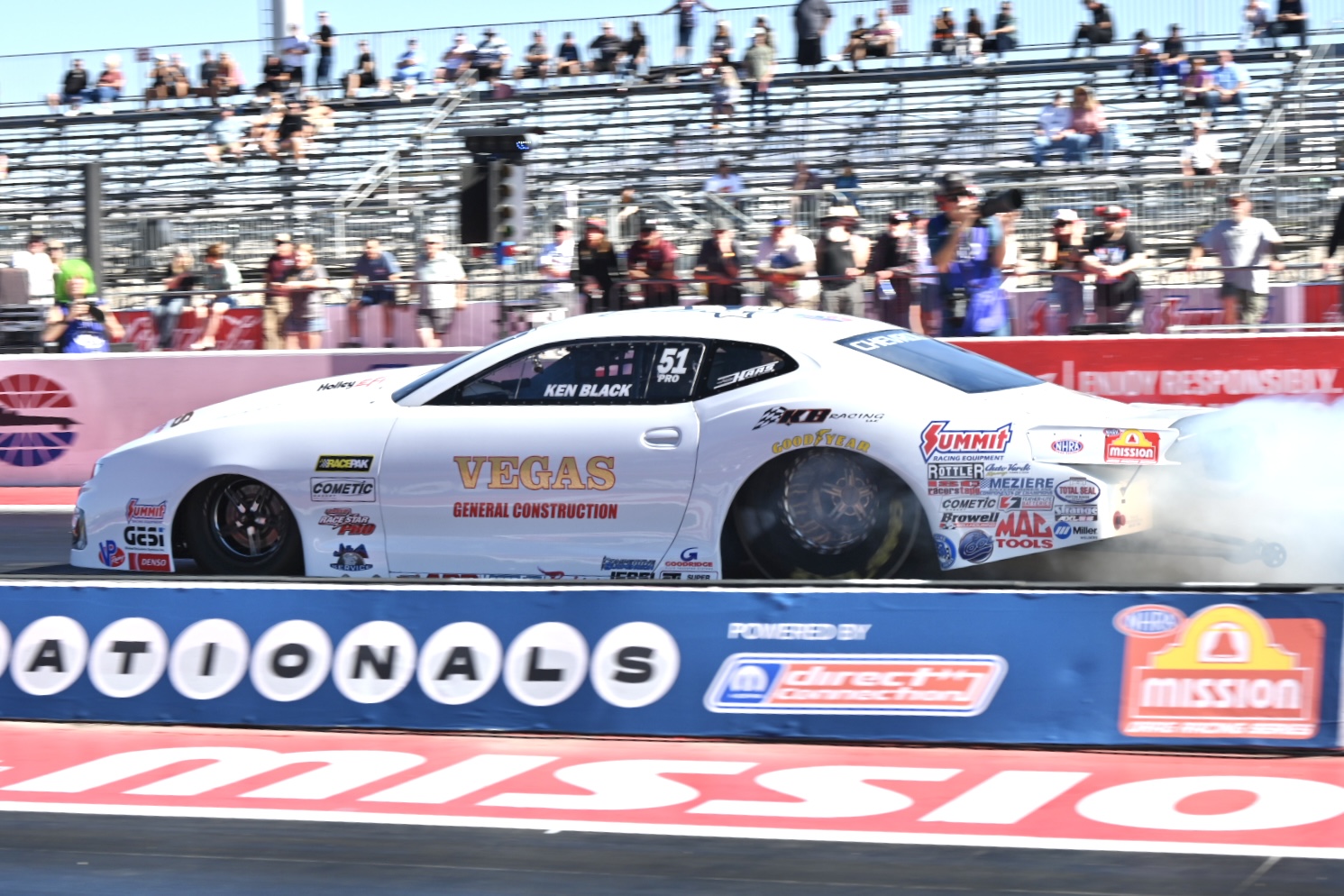 After the “Ken Black Way” street sign was revealed, a specially designed KB Titan Racing Pro Stocker — driven by crew chief Dave Connolly — pulled forward to make the first pass of the weekend. As a tribute to their beloved leader and coach, the car was outfitted with a design based on the original Vegas General Construction entry that Greg Anderson wheeled in the early days of the team, right down to the original KB Racing logo. Each driver in the KB Titan stable is also running with Ken Black’s name on the window, and each of their cars prominently feature the original KB Racing logo. Members of the crew are decked out in vintage KB Racing crew shirts, as well.