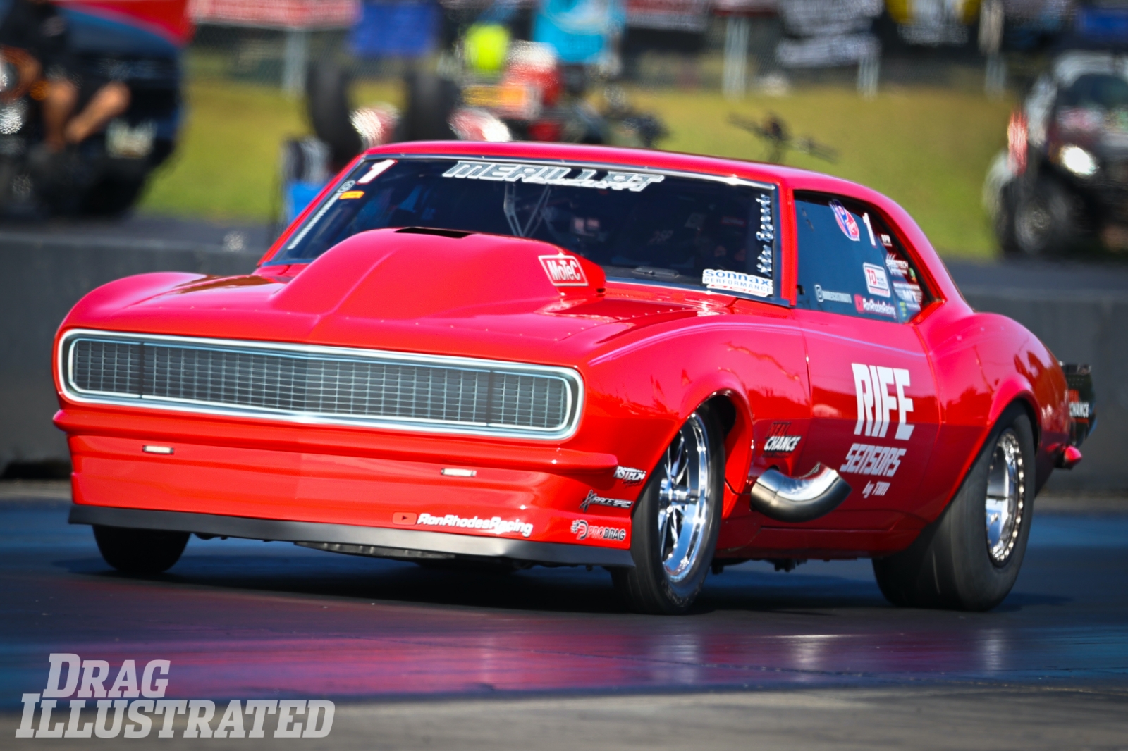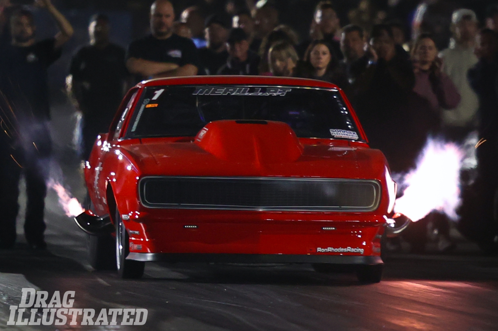 Rhodes’ vivid red Chevy Camaro is widely recognized in drag racing as well as the X275 ranks, where he pilots his nitrous-oxide-injected, big-block-powered, and leaf-spring-suspended machine to top elapsed times and event wins. The Camaro has a long, storied history going back to its roots as a street car, and it has been Rhodes’ relentless pursuit of performance that has taken it to where it is today.