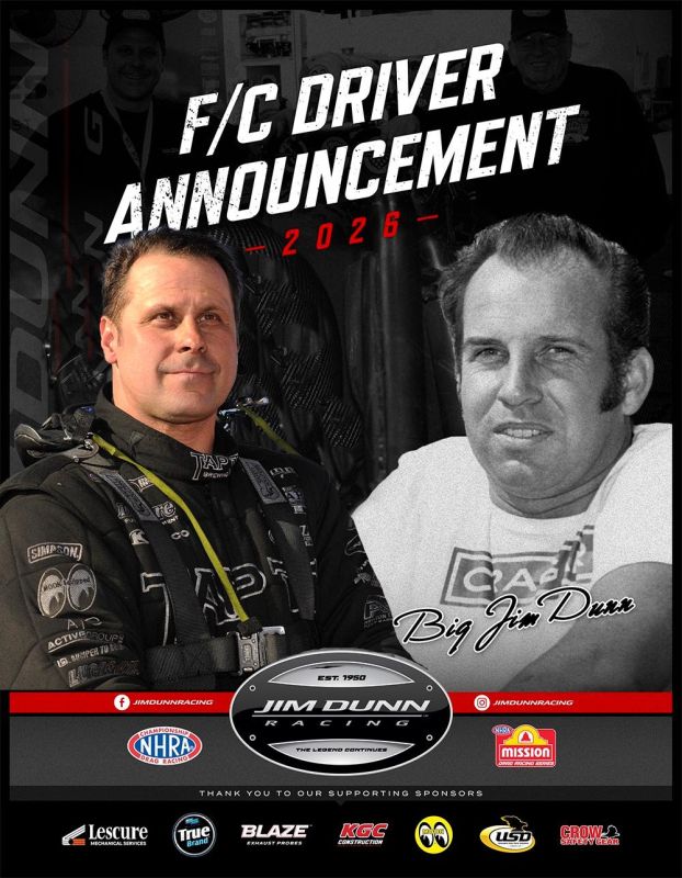The 2026 NHRA season kicks off March 5-8 for the NHRA Gatornationals in Gainesville, Florida. Lesenko will participate in pre-season testing in February, where he will also re-license in the Jim Dunn Racing Funny Car.
