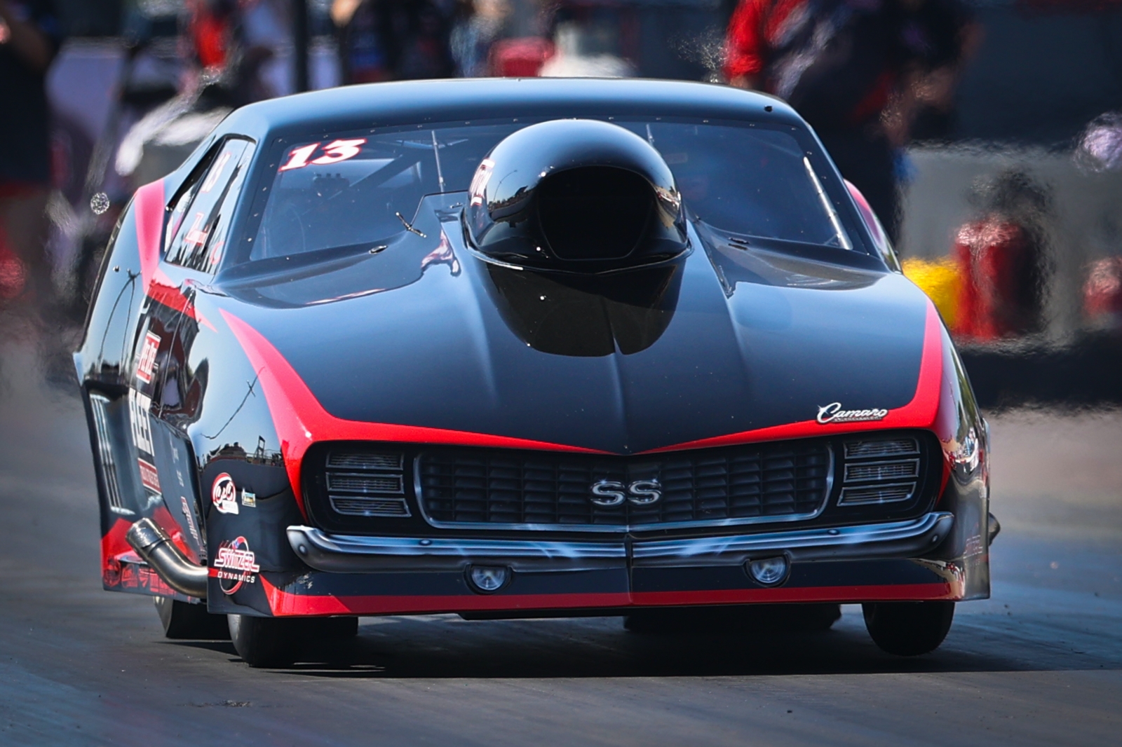 Jason Harris, who boasts pairs of world championships in both Pro Boost and Pro Nitrous, ran just one thousandth off the record, a 3.556 at 211.27, in his Harts Charger-boosted “Party Time” ’69 Camaro to qualify second. Lyle Barnett in Tommy Youmans’ Harts Charger-equipped Wright Mowers “Clean Title” ’18 Camaro qualified third with a 3.561 at 212.46.
